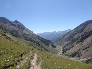 Nach einer langen Mittagspause etwas nach der Passhöhe machten wir uns auf den langen Abstieg nach Vallouise. Es war erst früher Nachmittag, daher entschieden wir uns, mindestens bis Vallouise, evtl. noch etwas weiter, zu laufen. Die letzten Kilometer auf Asphalt waren dann doch etwas ermüdend, aber nach einer Stärkung mit Panaché und Eis in Vallouise schafften wir noch 3 weitere Kilometer nach Pont des Places mit einem kleinem, ganz einfach ausgestatteten und fast leerem Campingplatz.